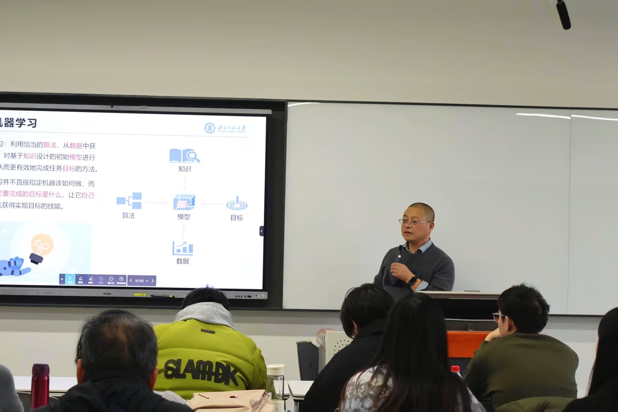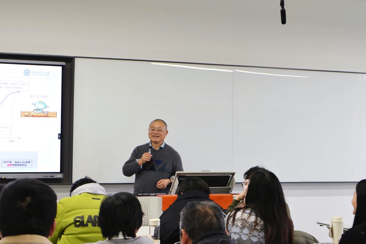 12月17日下午,南京航空航天大学金城学院新视域文化产业学院主办、人文社科学院承办的“人工智能技术及其教育应用”专题讲座在图书馆T-N306成功举行。讲座特邀西北师范大学教育技术学院二级教授、博士生导师杨鸿武老师主讲,人文社科学院院长助理邢浩老师主持。人文社科学院与马克思主义学院师生共同聆听了这场内容翔实、前瞻性强的学术报告。
